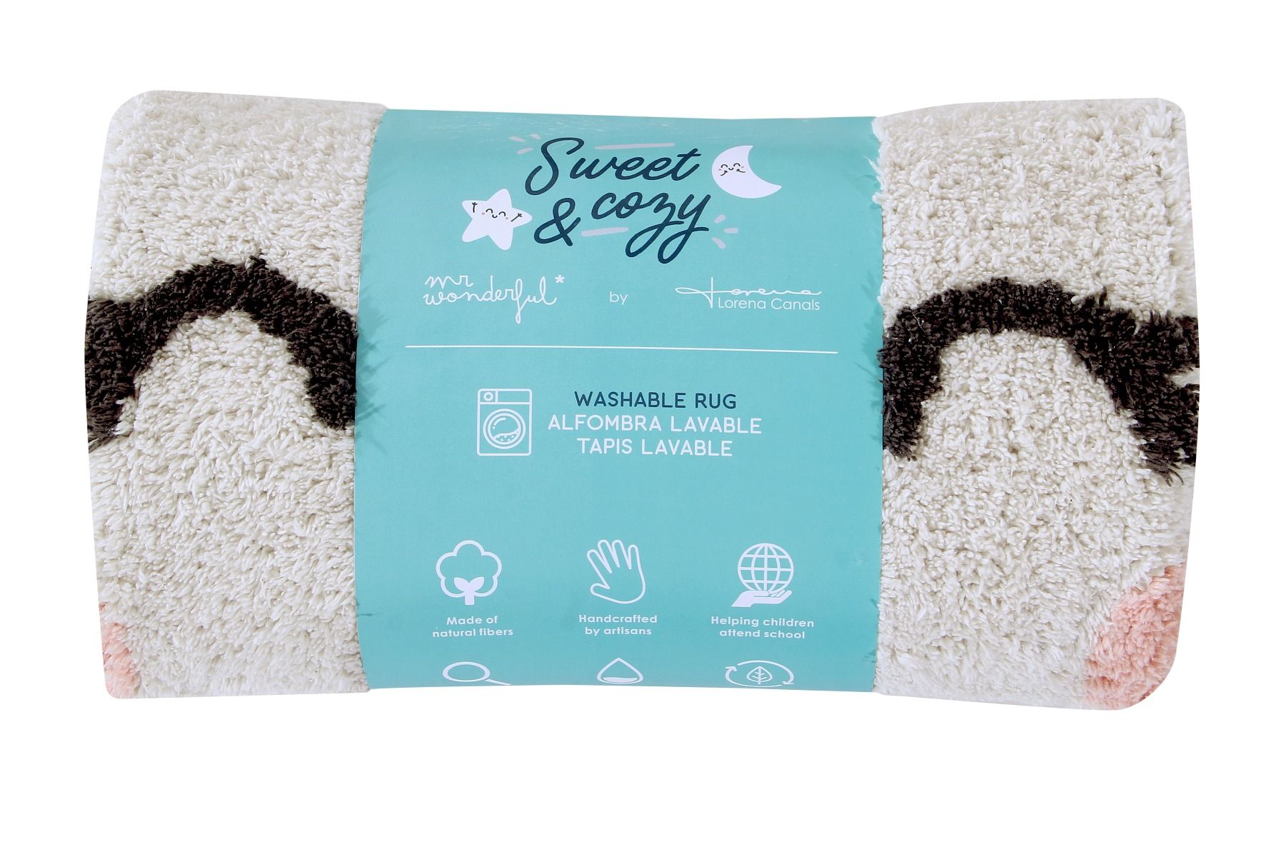 Feito à mão, em algodão orgânico na cor branco marfim e com detalhes em cinza e rosa pastel, pode ser lavado na máquina e assim mantela sempre limpa. Ideal para o quartos infantis o para criar uma zona de brincar para as crianças.