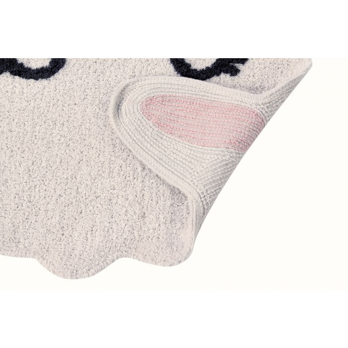 • Tapete felpudo branco com orelha rosa de coelho à vista