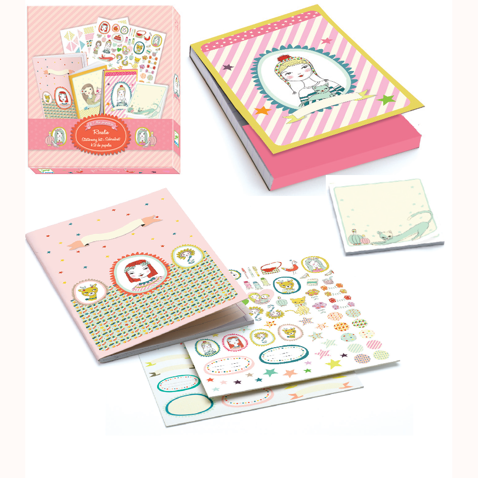 CONJUNTO DE ESCRITA ROSALIE 10,00 € Desconto de %. Partilhar O produto encontra-se sem stock. Caixa Conjunto de Escrita. Caixa c/ blocos, adesivos, autocolantes, etc. Medidas Caixa: 21 x 25,3 x 3 cm. Inclui: - Caderno - Caderneta - Bloco de Notas - 50 Notas reposicionáveis - 153 Autocolantes - 1 Bonita Caixa para guardar segredos Nota: As cores dos produtos podem variar dependendo do monitor do seu computador. Imagens ilustrativas. Marca DJECO Tags ESCOLABLOCODENOTASPAPELARIA Características
