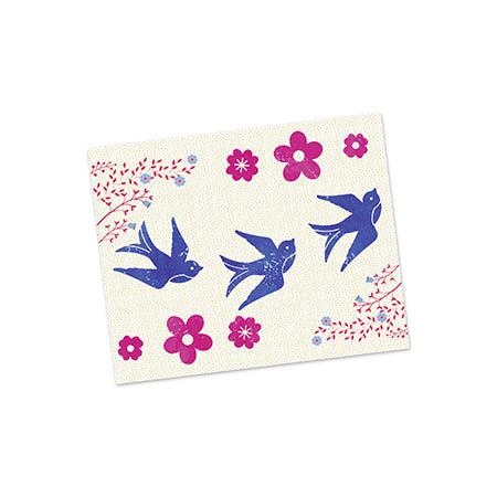 • Pano com desenho de pássaros azuis e flores cor-de-rosa