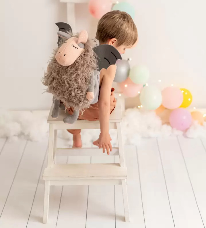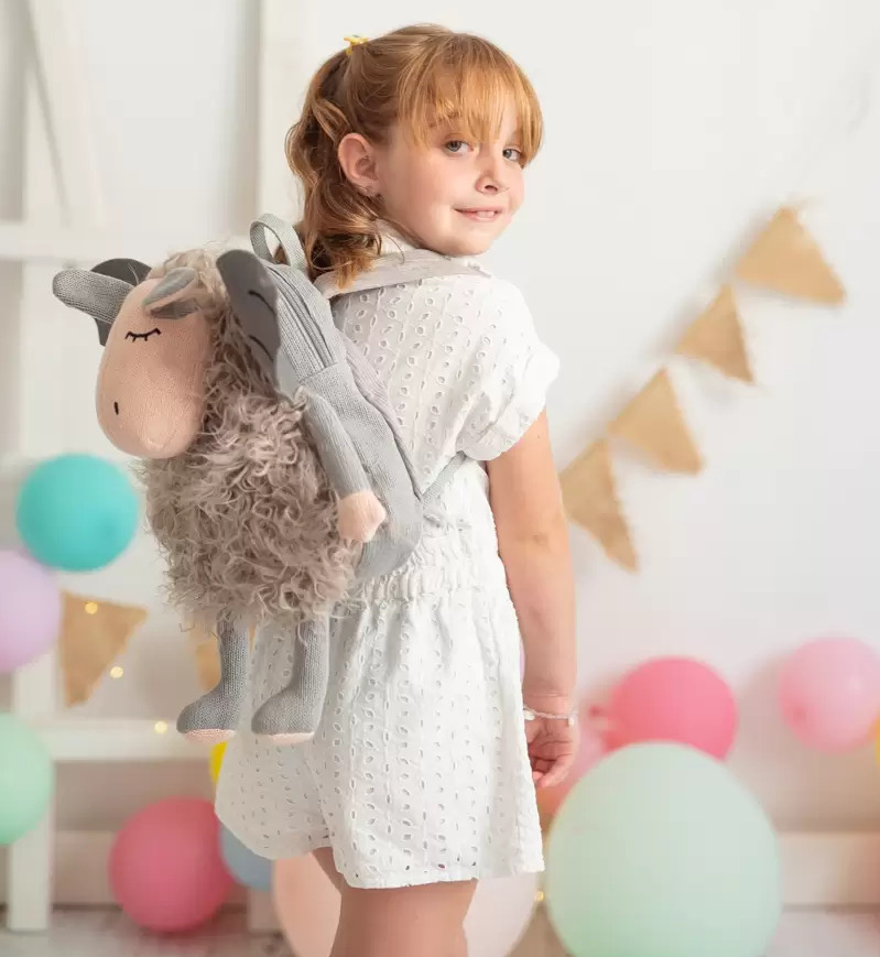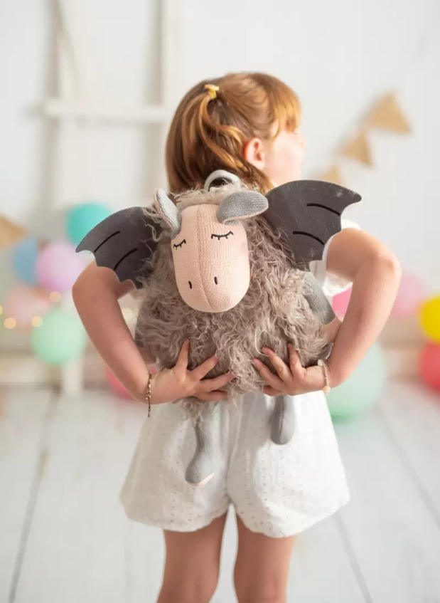 Com um design divertido, e terno, em forma de animal, pensado ao detalhe, com as suas asas e corpo felpudo. Um excelente companheiro de viagem, e de desenvolvimento, para as crianças. É uma boa forma de fomentar o amor por animais e pela natureza. Desenhada a pensar nos mais pequenos, ela dispõe de um grande espaço de armazenagem, com fecho e asas ajustáveis.