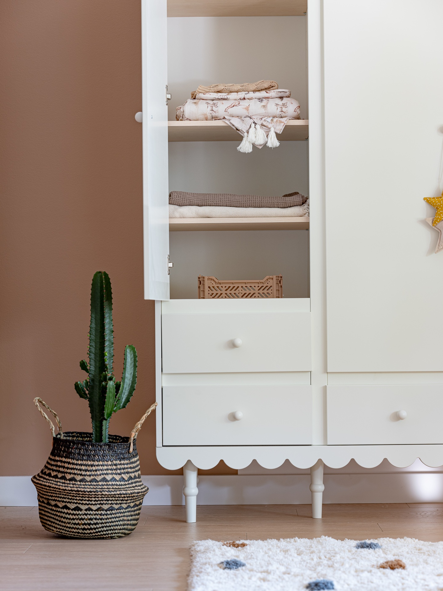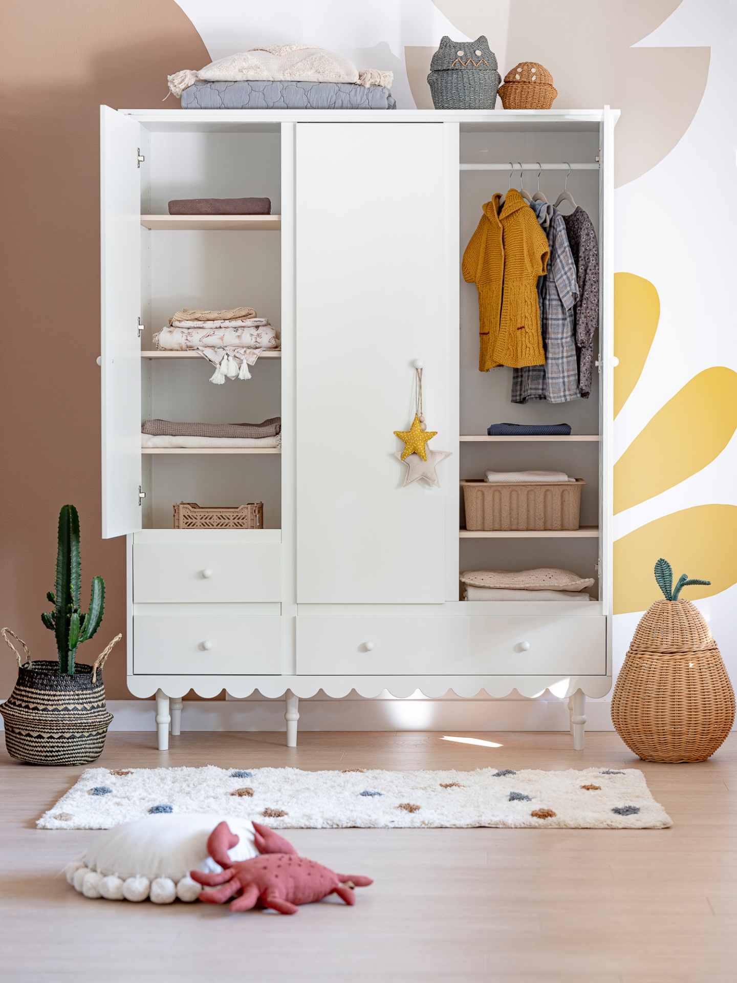 Roupeiro 3 portas no estilo Retro/Booho em Branco, com 3 portas e 3 gavetas